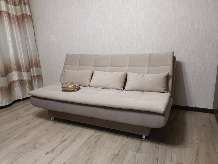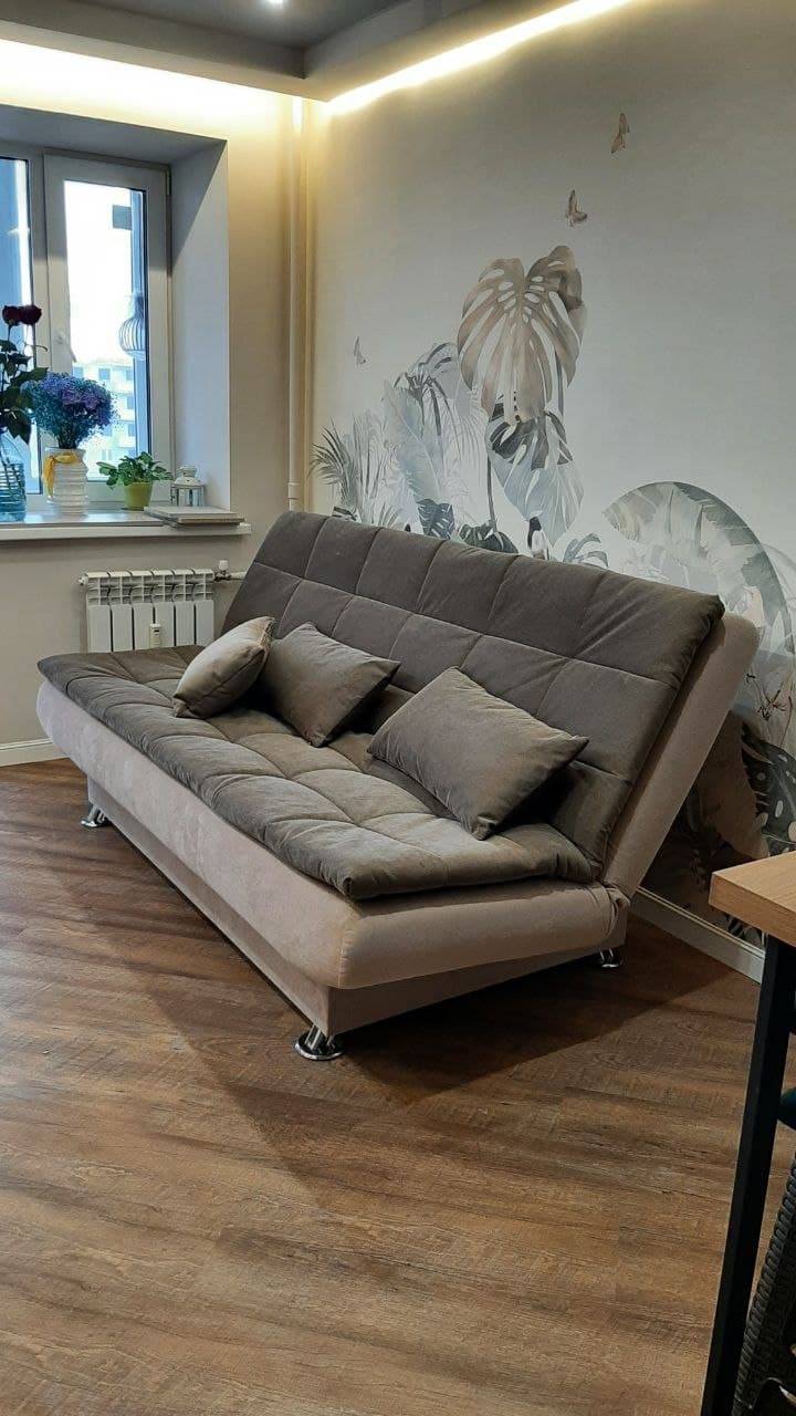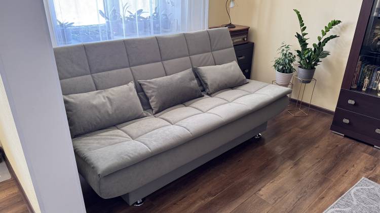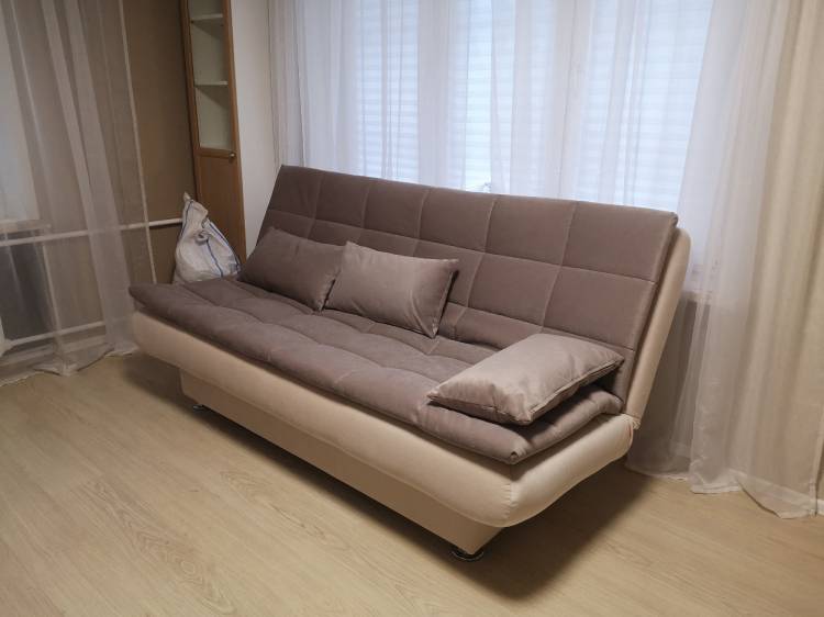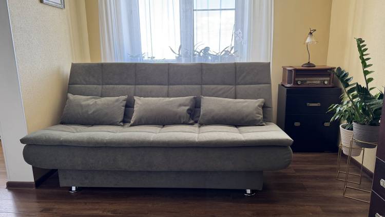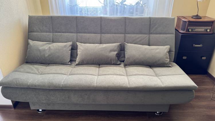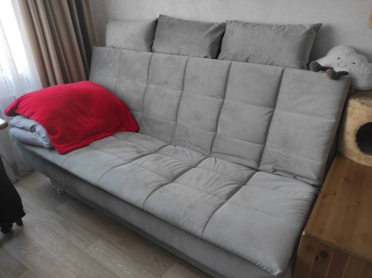 Диванчик просто супер! Очень удобный, когда раскладываешь - вообще не чувствуется перехода между половинками, спится на нем отлично, хотя мне с моей спиной далеко не каждый матрас подходит, а тем более диван)). Очень довольна. И выглядит очень стильно. Места занимает меньше, чем старый, благодаря тому что нет боковушек - тоже плюс.
