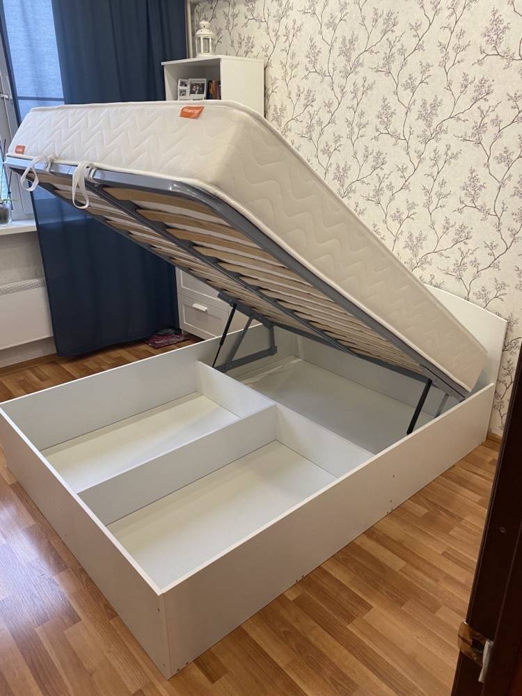Хорошая, недорогая кровать с учётом того что не надо докупать основание. Очень качественно сделана, для меня достаточно места под кроватью, поместилось все что хотела убрать. Подкупило, что доставка и подъем бесплатно! Магазин чётко работает, все понравилось!