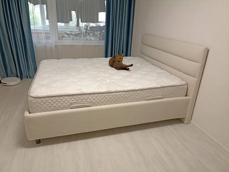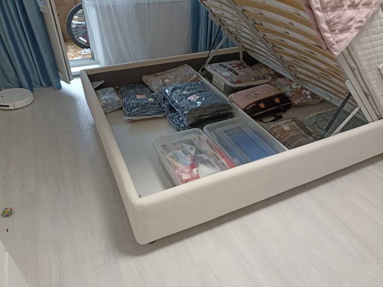 Обалденная кровать!!! Матрас тут же приобрели (Dianta Hard) и очень счастливы, даже котя оценил) Пылесос спокойно проходит, ящик оооочееень вместительный, кровать крепкая, высокая и выглядит все это шикарно! Прям по царски)) Купили кровать, матрас и подушку и доставка и сборка вышли бесплатно! Мастер собрал меньше чем за час.