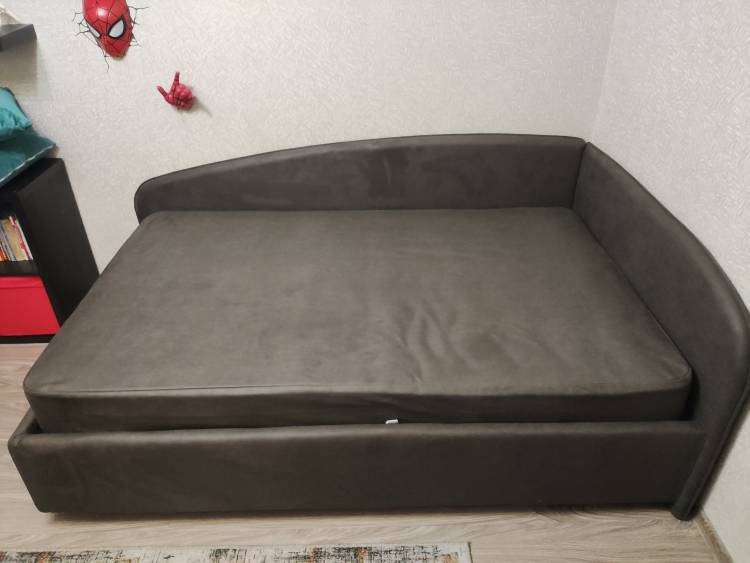 Мне кровать приглянулась сразу, простая, но с изюминкой. Ничего лишнего, аккуратная и красивая. Привезли и сразу собрали, это было приятным сюрпризом, я привыкла, что сейчас сборщики приезжают через несколько дней, а ты сидишь с дровами до его приезда. Качеством кровати более чем довольна, крепкая кровать и основание и ткань плотная. Цвет вельвет латте отлично подошел к моему ремонту в темных оттенках, кровать освежает комнату. Мама увидев кровать попросила заказать ей такую же, но в другом цвете, вот сейчас как раз выбираем расцветку и оформляем заказ.