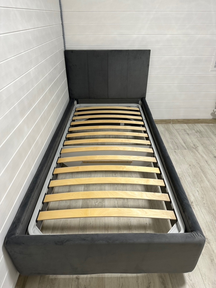 - Модель изготовлена из ДСП. Обивка кровати выполнена из экокожи класса «люкс» или мебельной ткани.
